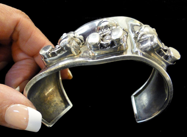 Repair, is when an item is fixed. You may see some signs of the original damage. For example, if you ran over a wide bracelet with figures on it, the bracelet can be reshaped and polished. After it is repaired, it will fit well and look very good, but on very close inspection you may notice a slight indentation on the rim. Also, a few details on the figures may not be as fine in detail.